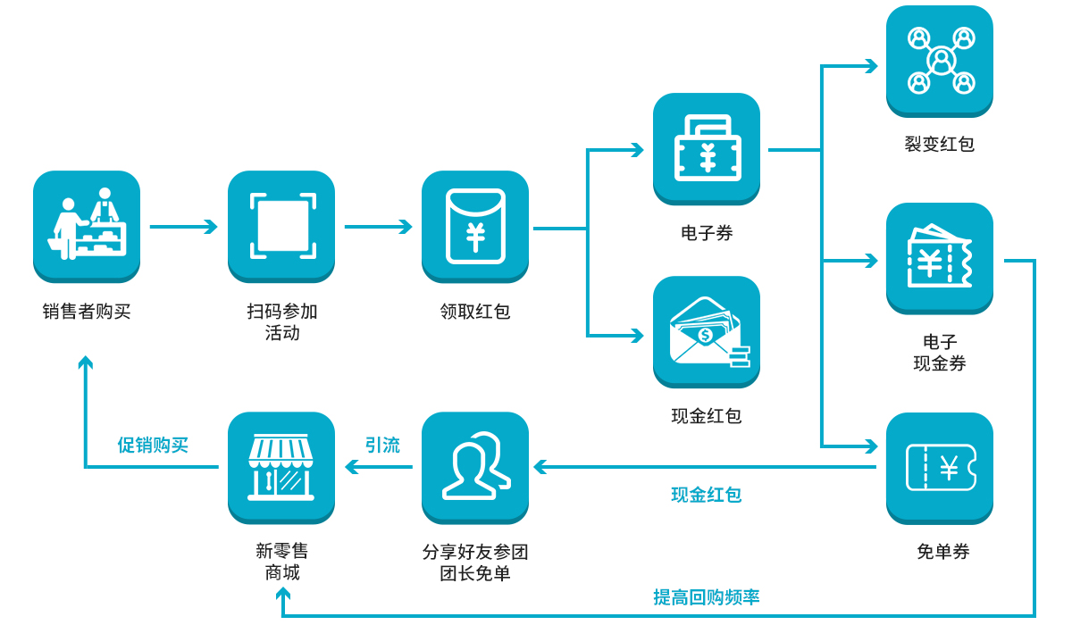 根据市场动态实时设置、调整活动策略,可指定人群或地区设置活动,实现营销活动的精准投放,彻底解决传统活动无法监控终端效果,奖品不可换、力度不可调、费用不可控等问题。