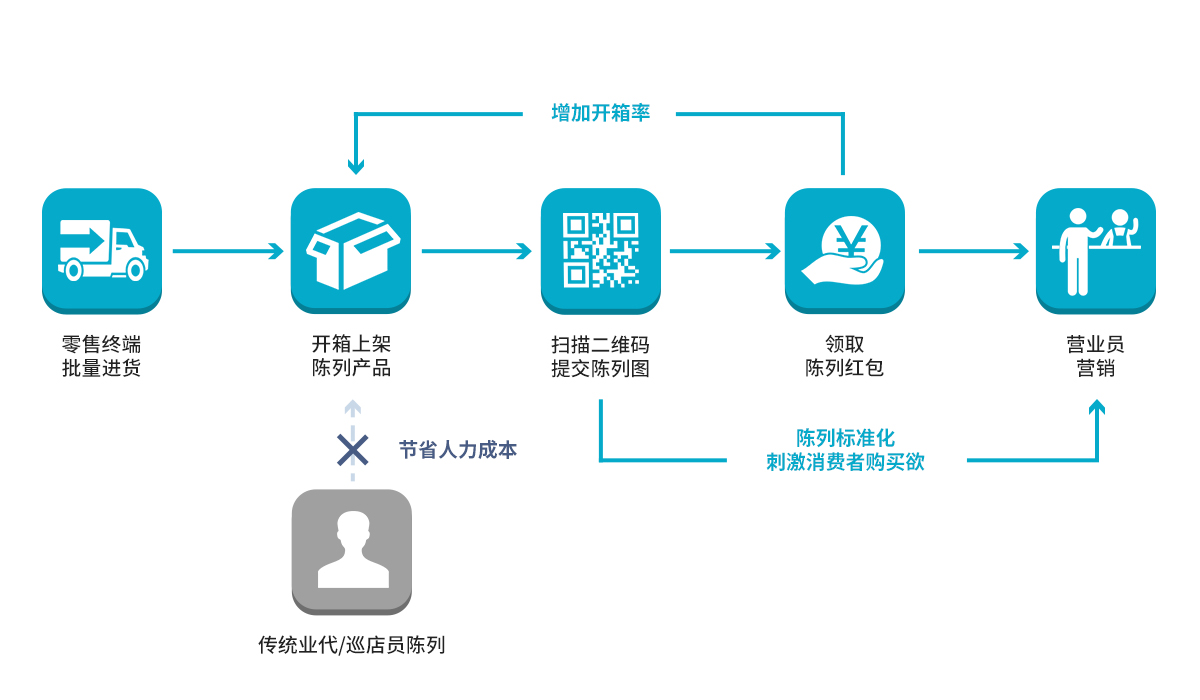 通过扫码领红包,激励消费者首次购买和复购,提升销量;通过箱码的应用,提升渠道动销能力,提高上架率和开箱率。